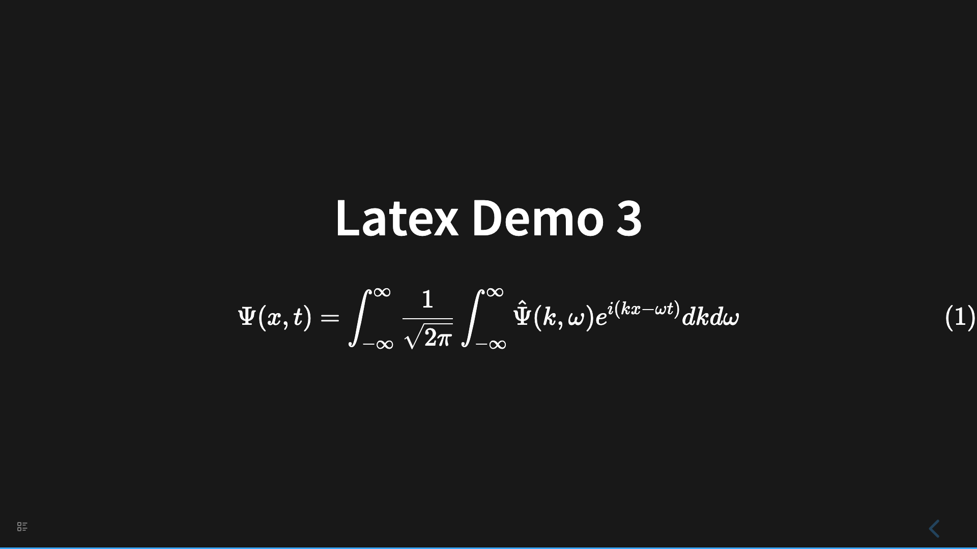 $$\begin{equation} \Psi(x, t) = \int_{-\infty}^{\infty} \frac{1}{\sqrt{2\pi}} \int_{-\infty}^{\infty} \hat{\Psi}(k, \omega) e^{i(kx - \omega t)} dk d\omega \end{equation}$$